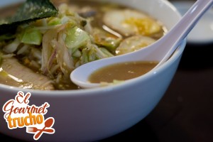 Debo aclarar que sirven el ramen en dos medidas: una, recatada por S/. 16.00, y la otra, por S/.22.00, que dice a gritos «yo soy el Gourmet trucho y desayuno caldo de gallina doble presa todos los días». Ya se imaginarán cual fue la que pedí.